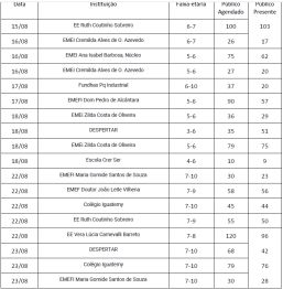 O tema musicalidade conduzirá as atividades deste ano, que acontecerão de manhã e à tarde, em 4 horários de atendimento. A expectativa é acolher até 400 alunos por dia (100 em cada horário). Poderão participar escolas, públicas e privadas, de educação infantil, ensino fundamental e médio, além de instituições e outros grupos.