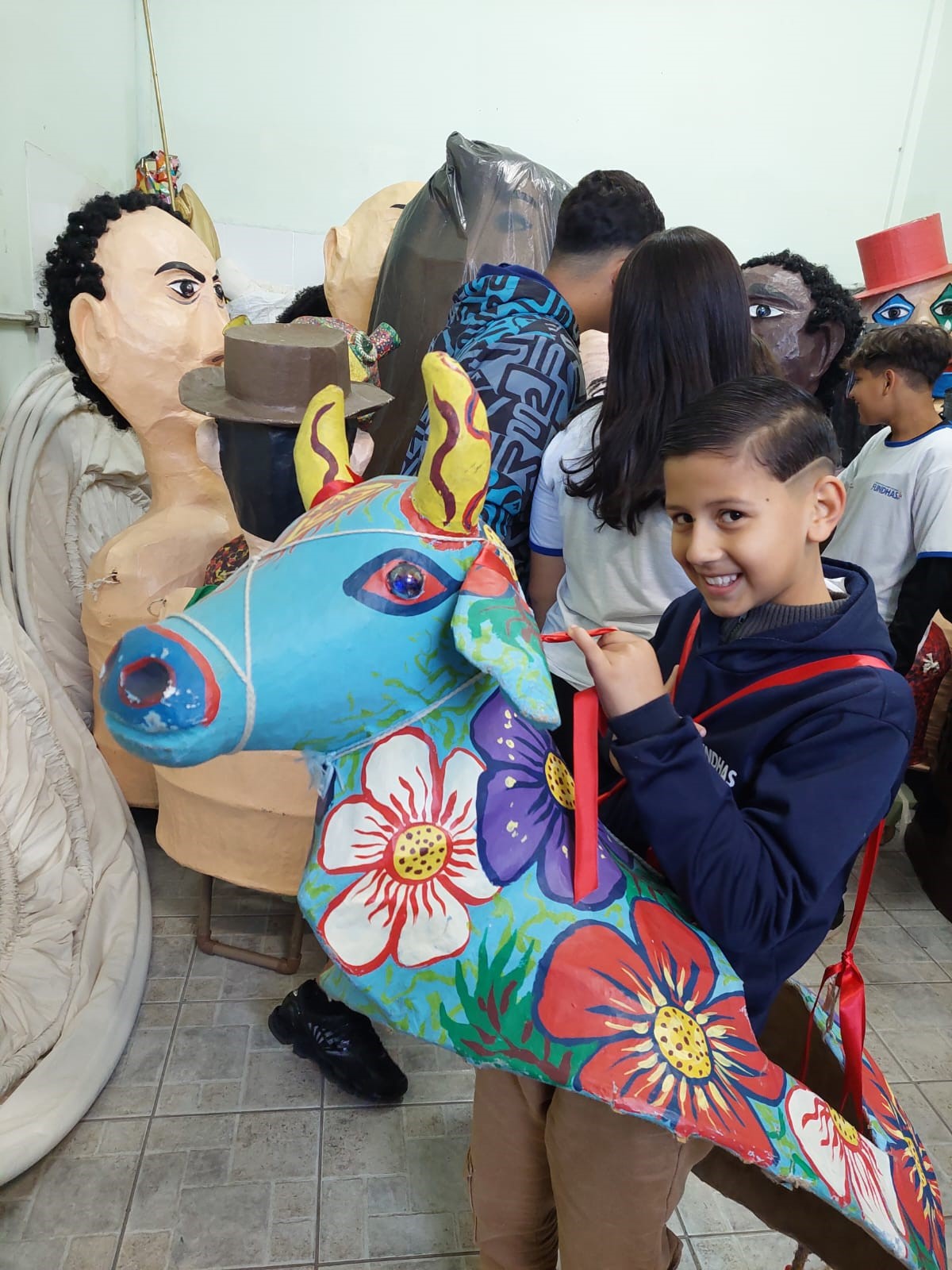 Além da parte administrativa, os alunos conheceram o Ateliê de Artes Visuais Johann Gütlich, o Centro Cultural Clemente Gomes, o CET (Centro de Estudos Teatrais), além do local onde são guardados os bonecões do Pirô Piraquara.