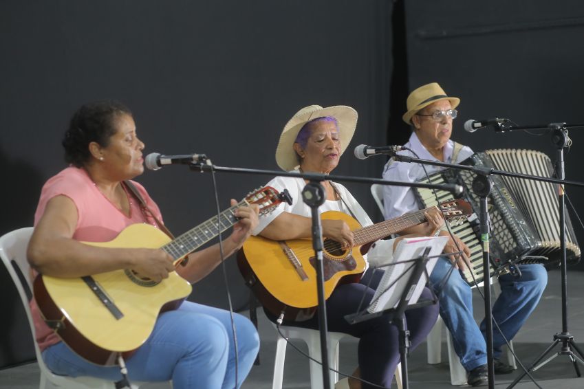 O palco é aberto para os participantes compartilharem a sua arte e conhecimentos. Artista experientes e com anos de carreira compartilham a sua arte com aprendizes que começaram a atuar agora.