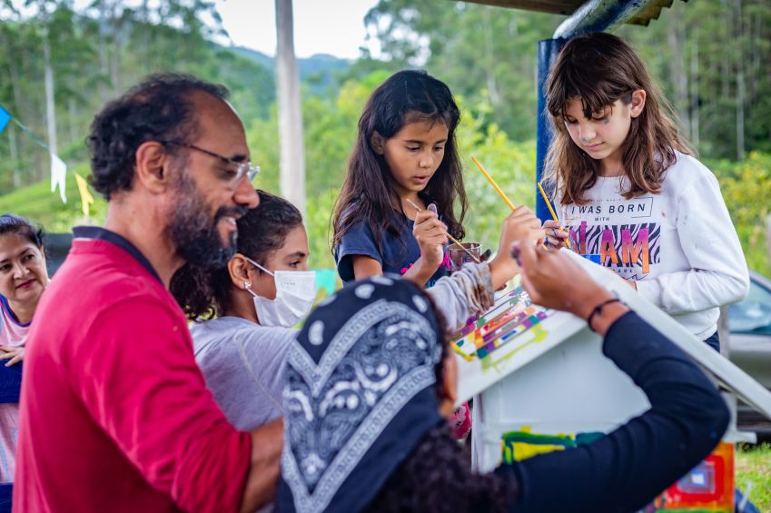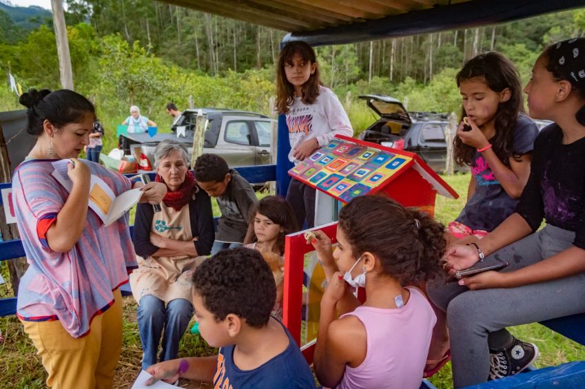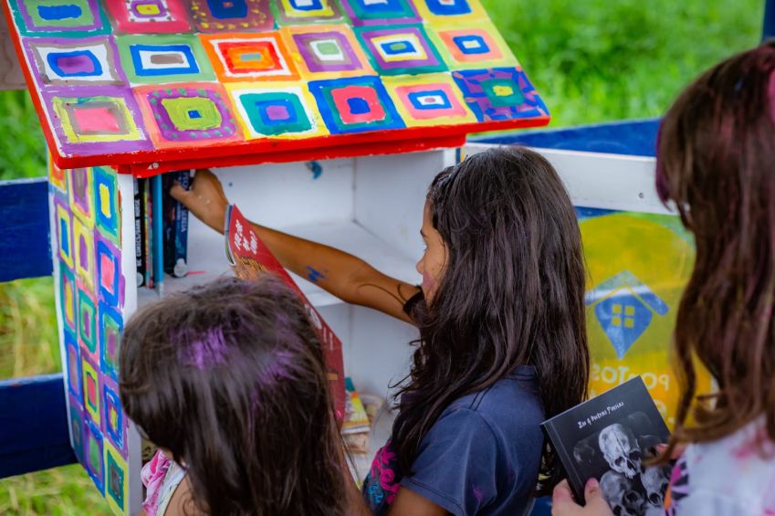 Cada mini biblioteca, construída com madeiras recicladas e pintadas por crianças do próprio bairro, oferece um acervo de 30 livros. / Foto: Danilo Ferrara