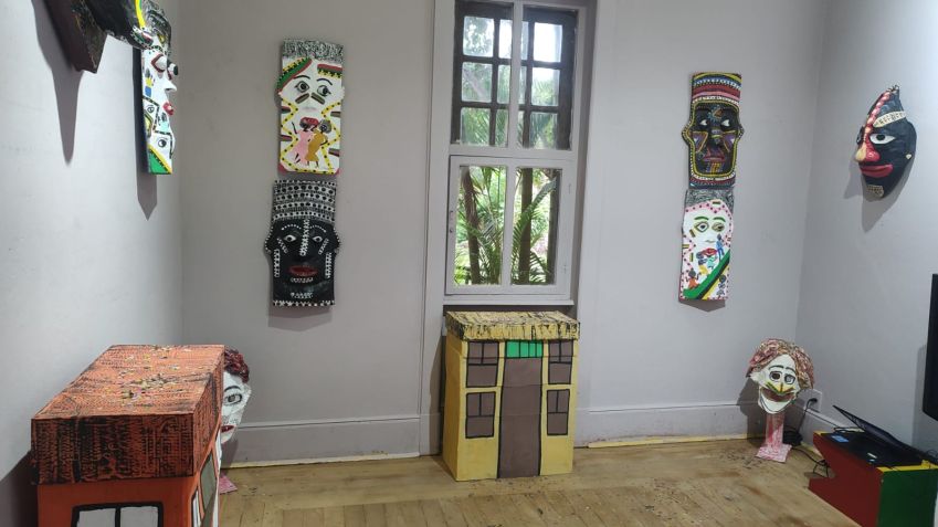 Máscaras que poderão ser apreciadas na instalação de Carnaval montada da sala das exposições temporárias. São 12 máscaras de parede e 4 com pedestal. A instalação poderá ser visitada até o dia 5 de março, nos mesmos dias e horários da exposição de longa duração.