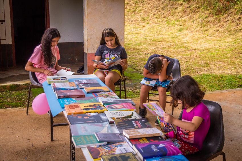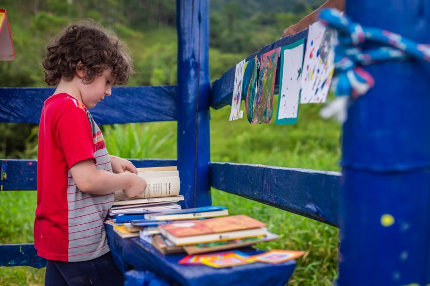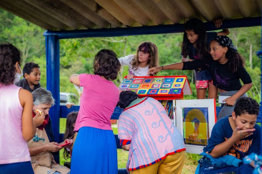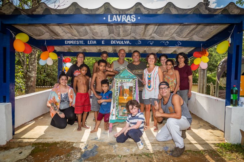 Cada mini biblioteca, construída com madeiras recicladas e pintadas por crianças do próprio bairro, oferece um acervo de 30 livros. / Foto: Danilo Ferrara