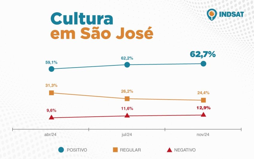 As ações culturais desenvolvidas em São José dos Campos alcançaram "alto grau de satisfação” no último trimestre de 2024. É o que mostra a mais recente pesquisa Indsat (Indicadores de Satisfação dos Serviços Públicos), divulgada na última segunda-feira (9).