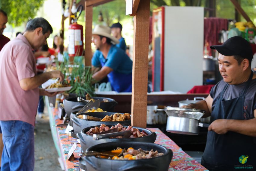 O evento, que começa com a abertura da porteira ao toque do berrante, atrai milhares de pessoas com suas barracas de comidas e artesanatos típicos, café com biscoito, missa sertaneja, roda de viola e música de raiz.